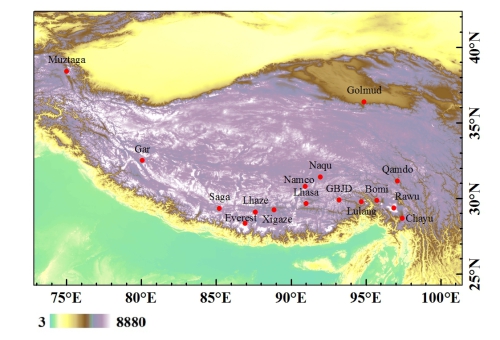 感谢中国科学院藏东南高山环境综合观测研究站、中国科学院纳木错圈层相互作用综合观测研究站、中国科学院珠穆朗玛峰大气与环境综合观测研究站、阿里荒漠环境综合观测研究站和慕士塔格西风带环境综合观测研究站在样品采集和气象数据获取等方面提供的帮助。本研究由国家自然科学基金(40871233、41071321、41222010)资助。