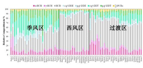 图2 青藏高原大气POPs的空间组成及其与季风西风的关系