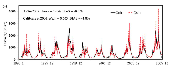 表1. 该研究中考虑的不同NLR情景及其对径流模拟的影响。唐乃亥水文站1996-2005径流量约为140.0 mm/年.