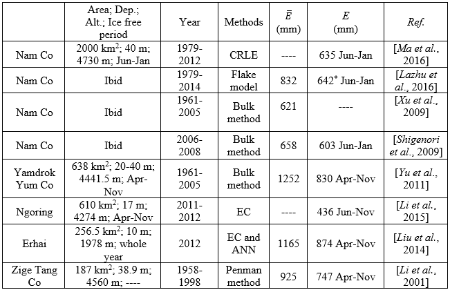 Table 1 Evaporation from high-altitude lakes on the Tibetan Plateau.