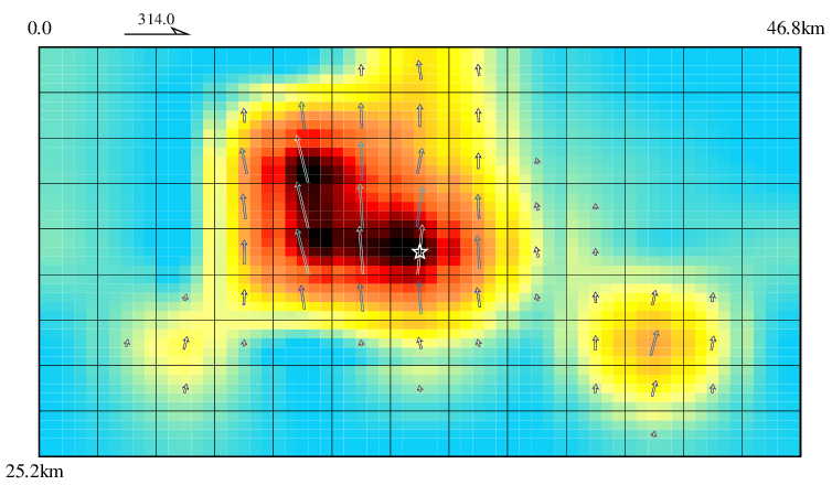 Fig. 4 The map shows the projection of slip distribution on the ground