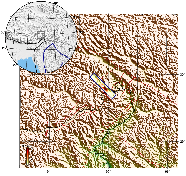 Figure 1 Focal mechanism of the M6.5 earthquake, Nyingchi, Tibet, China.