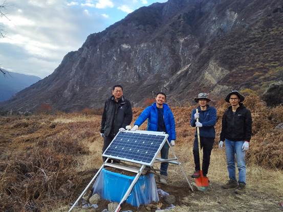 图1 科研人员在米林县直白村架设的宽频带流动地震台站