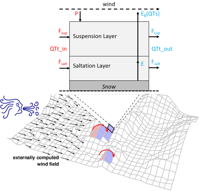 风吹雪作为一种特殊的质能输运形式,通过对雪粒的输运以及输运过程中发生的风吹雪升华显著地影响地表积雪的时空分布,不仅加剧了积雪空间的不均匀分布,还重新改变了积雪区的雪面物质和能量平衡,极大地影响着水文循环和积雪的演变。然而,现有用于气候与生态水文过程模拟的陆面模式缺乏考虑风吹雪过程的影响,这在很大程度上影响并制约了青藏高原积雪过程的模拟,导致青藏高原地区积雪及地-气相互作用过程模拟存在显著偏差。