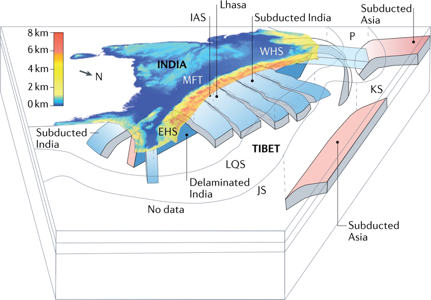 图5. 现今印度-欧亚大陆岩石圈俯冲几何形态