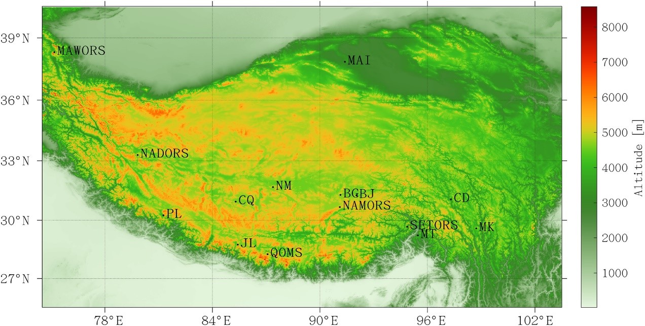 图1 “青藏高原多圈层地气相互作用综合观测研究平台”台站的位置和分布