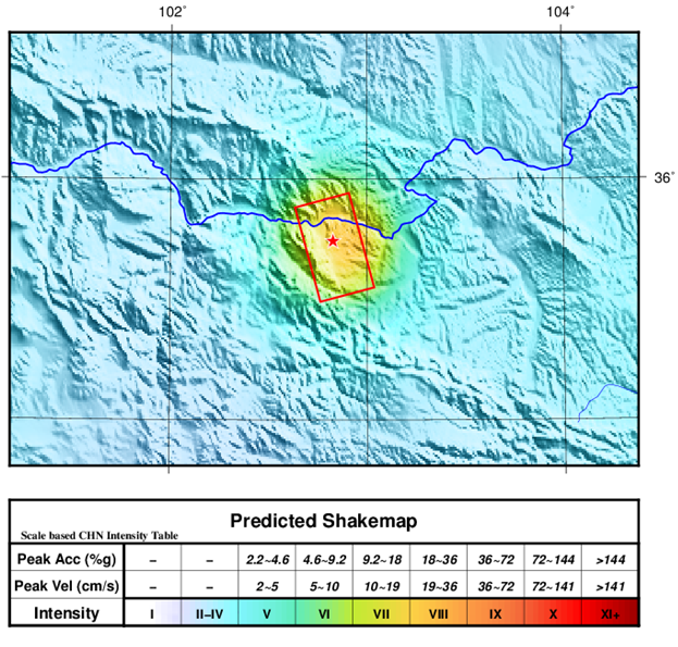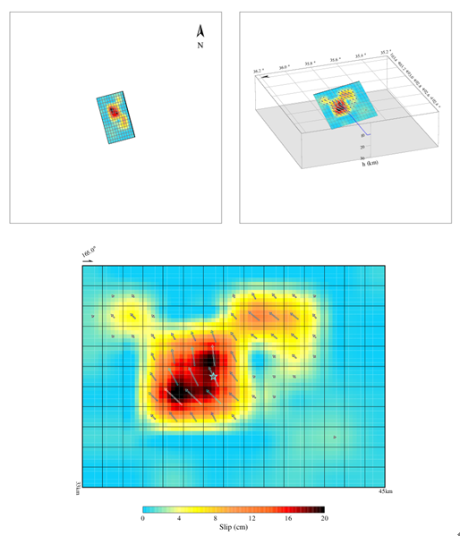 地震震源模型初步反演结果表明:这次地震为震级Mw6.1、震源深度约10公里的低倾角逆冲兼右旋走滑型地震,破裂持续时间约8秒。计算震中区的理论地震烈度(中国地震烈度表,2008)约为8度。