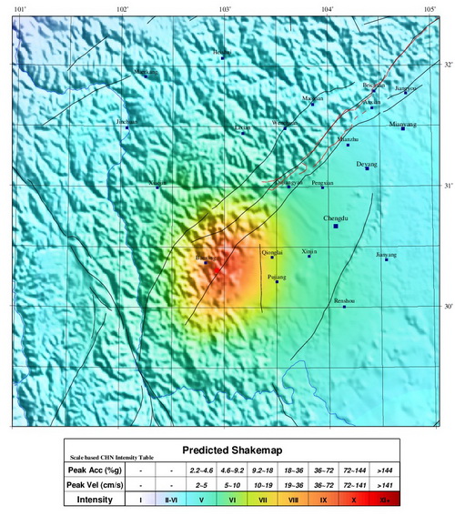结果表明:雅安芦山地震为震级Mw6.7,震源深度10.2km的逆冲断层,破裂在断层面上的分布比较集中,震中区的地震烈度(中国地震烈度表,2008)约为9度。主震和余震分布于龙门山断层带西南端的彭县—灌县断裂带上,位于2008年5月12日汶川地震后的库伦应力增加区域内(单斌等,中国科学D,2009年39卷5期),且两者震源性质相近均为逆冲断裂为主,表明该地震与汶川地震有密切关系,可视为汶川地震的强余震。