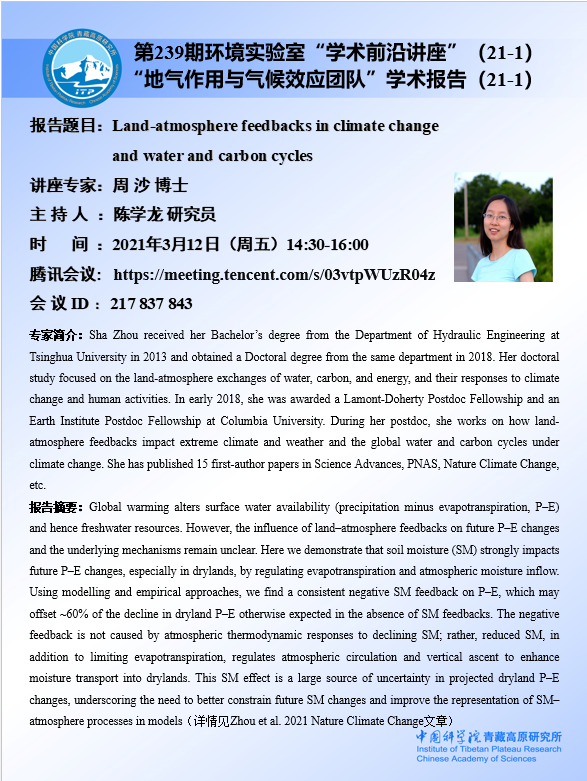 第239期环境实验室“地气作用与气候效应团队”学术报告(21-1)