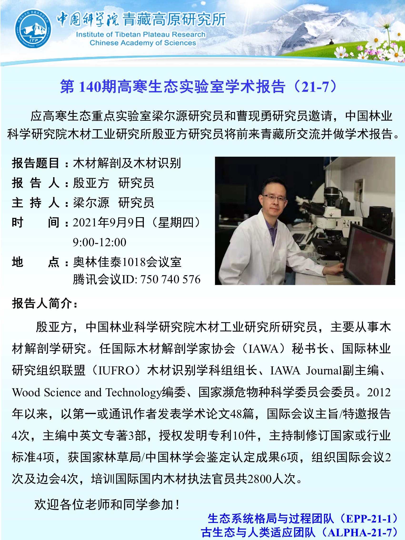 第140期高寒生态重点实验室学术报告(21-7)