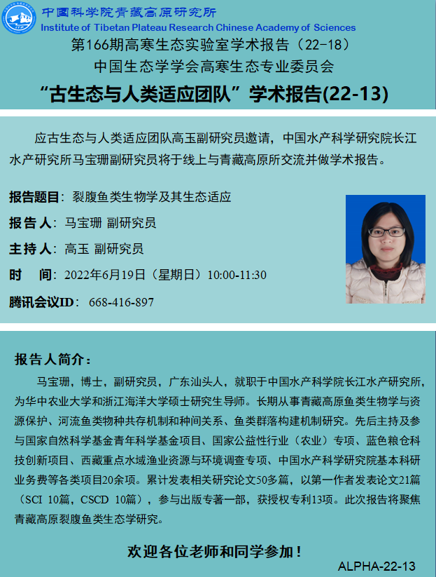 第166期高寒生态重点实验室“古生态与人类适应团队”学术报告(22-13)