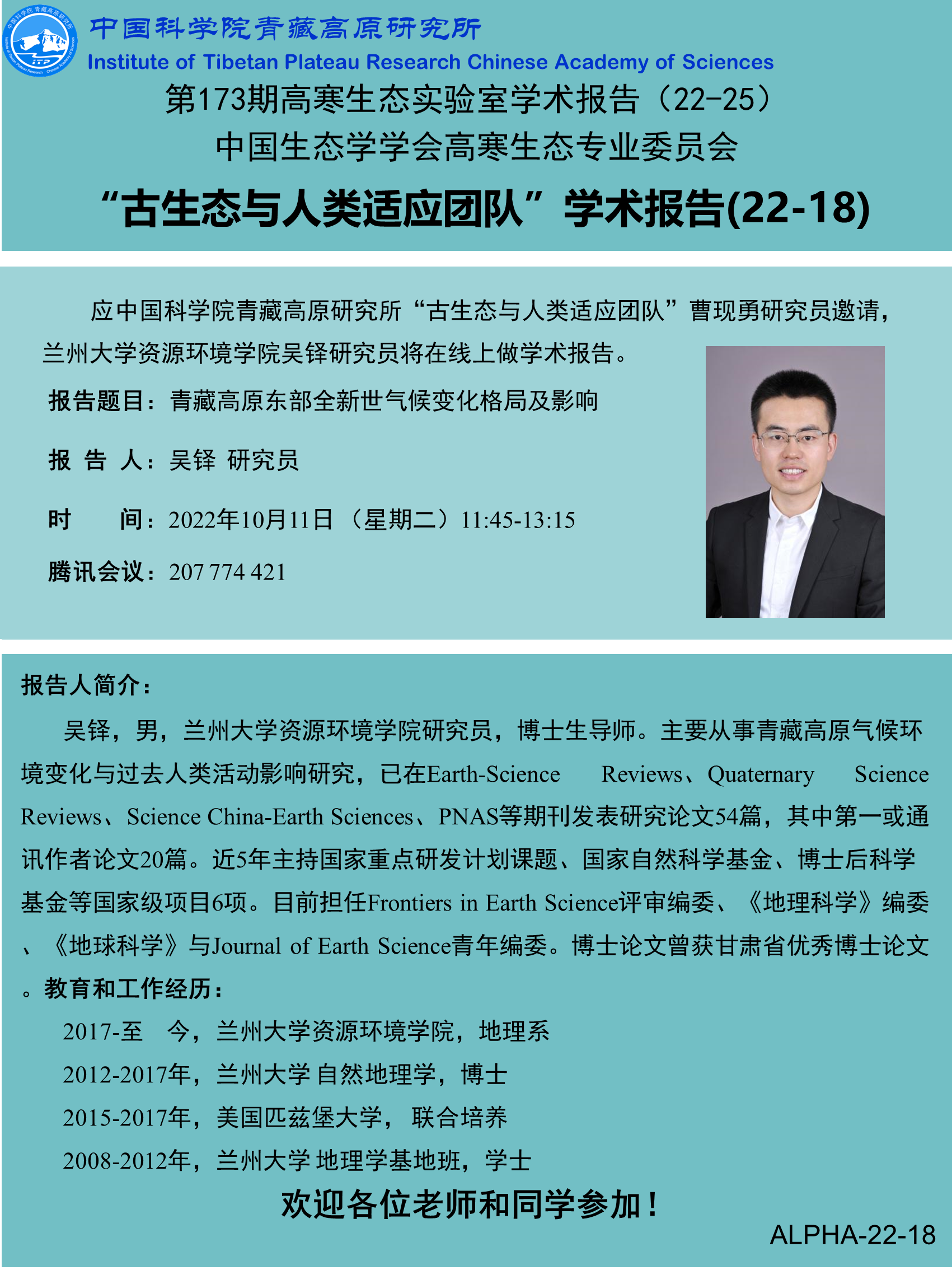第173期高寒生态实验室“古生态与人类适应团队”学术报告(22-18)