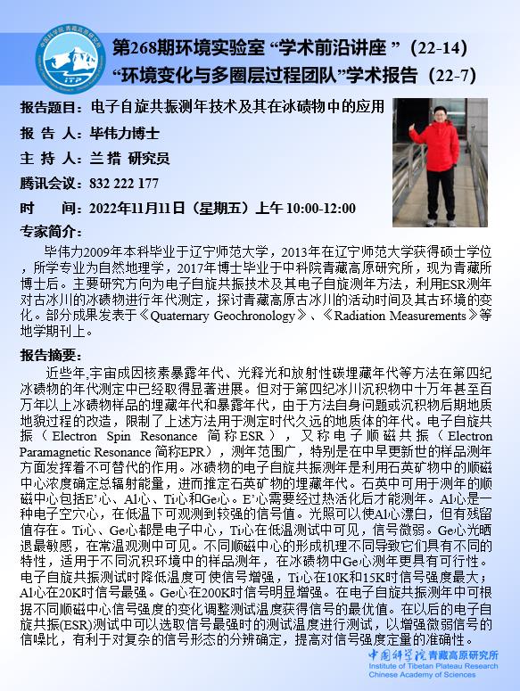 第268期环境实验室“环境变化与多圈层过程团队”学术报告(22-14)