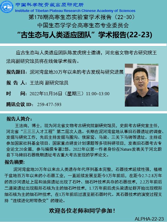 第178期高寒生态实验室“古生态与人类适应团队”学术报告(22-23)