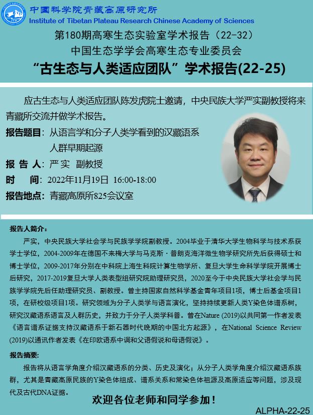 第180期高寒生态实验室“古生态与人类适应团队”学术报告(22-25)