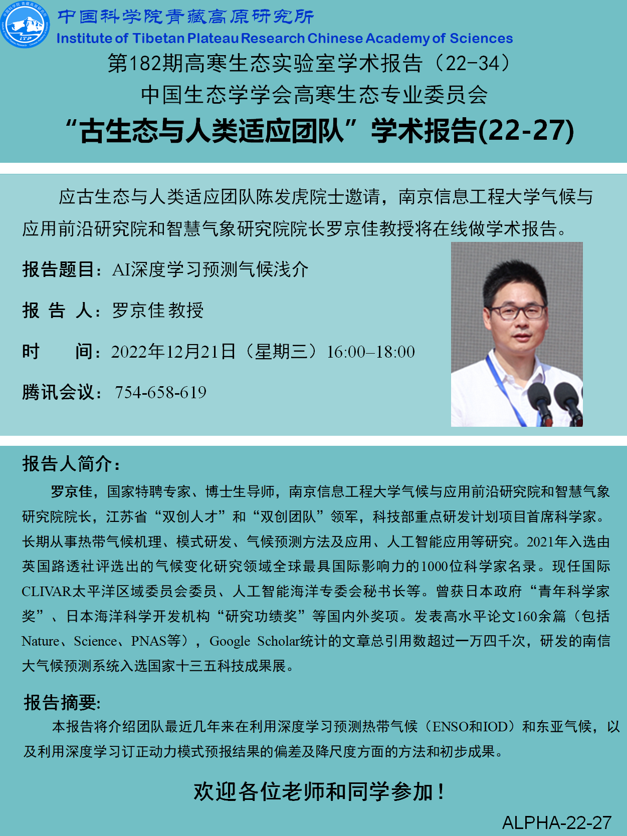 第182期高寒生态实验室“古生态与人类适应团队”学术报告(22-27)