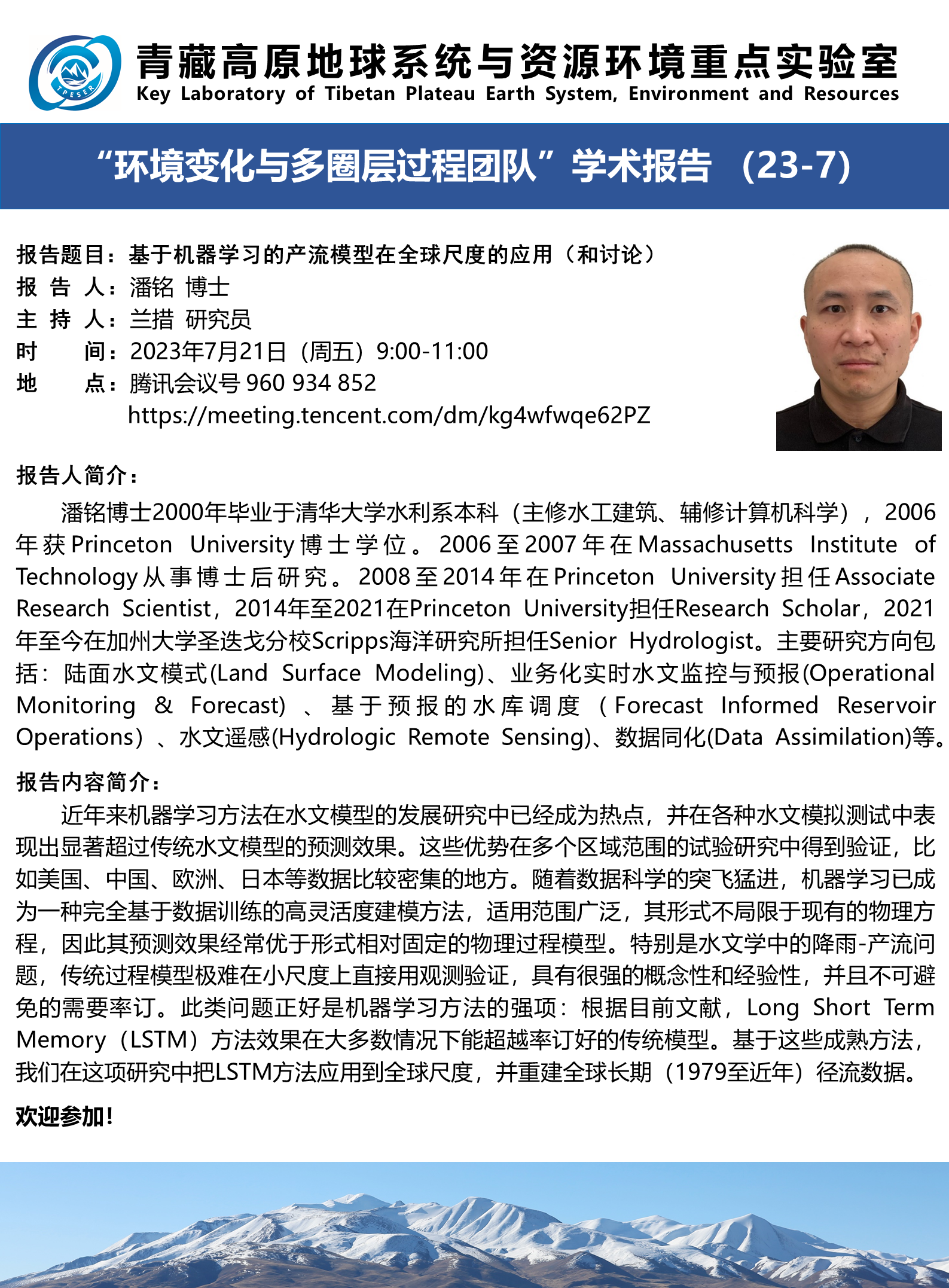 “环境变化与多圈层过程团队”学术报告(23-7)