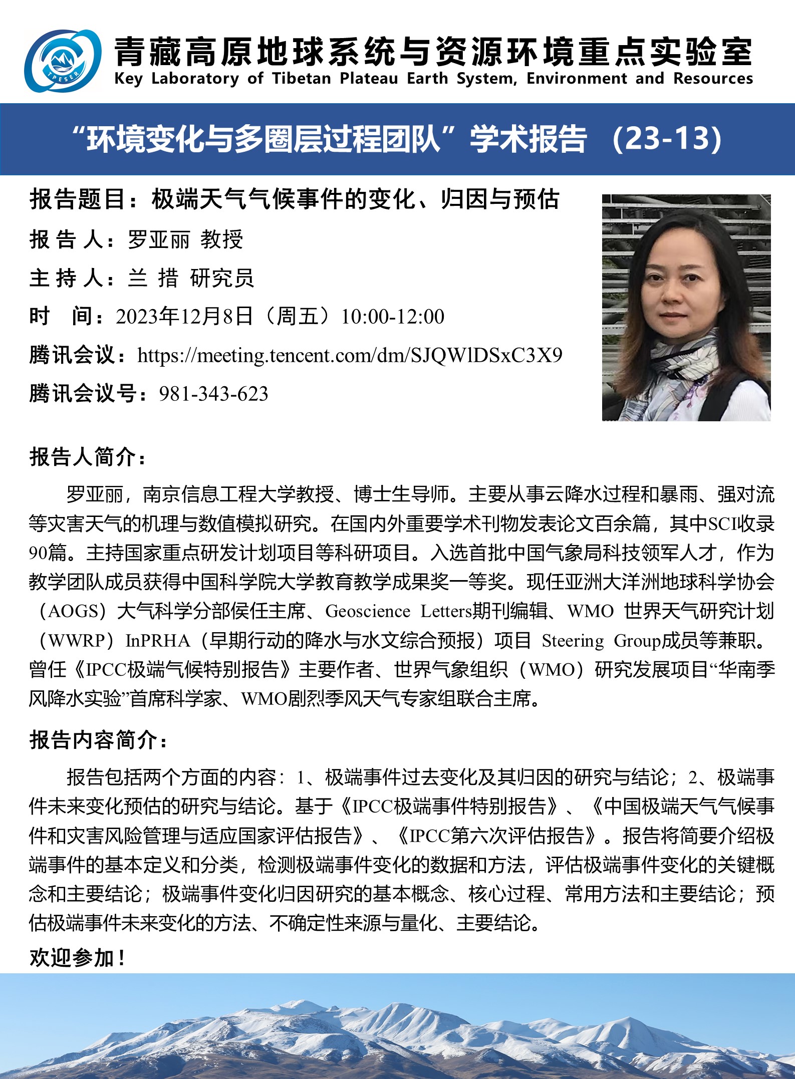 “环境变化与多圈层过程团队”学术报告(23-13)