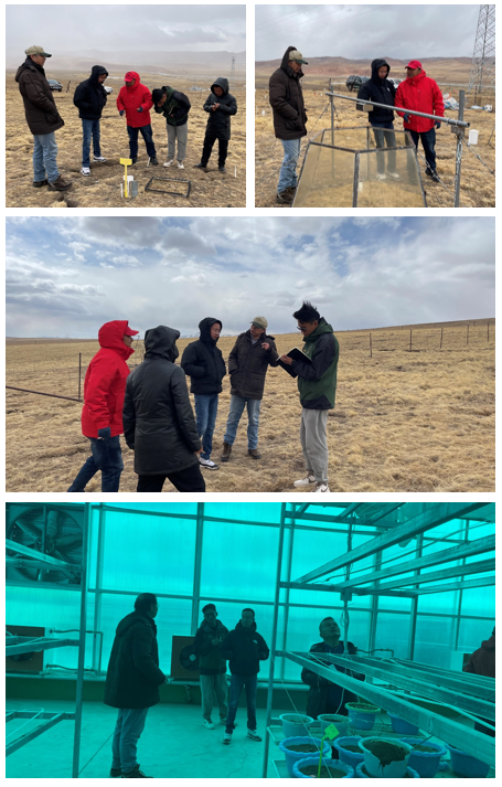随后,马玉军局长一行实地调研了那曲站高寒草甸草地梯度和逐步增温增减水、物种剔除、氮磷添加、不同季节增温以及退化草地增温等各类生态试验研究平台和那曲色尼区嘎尔德人工草地牧草品种筛选与种植、温室大棚牧草品种筛选与种植、优质牧草配方补饲牦牛等草牧业相关试验研究平台。