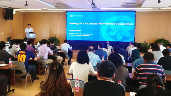 随后,国际合作局副局长王振宇为学员介绍了中国科学院的发展历程、取得的重大科研成果、国际化推进战略及其进展与面临的挑战,并强调,中国科技创新从学习、追赶、并行到引领,国际合作和国际化发展是必需的手段和必然的趋势。王振宇表示,中国科技创新在迈向世界科技强国的道路上,离不开科技部对各方工作的指导与支持,离不开驻外干部对国际科技合作工作的辛勤付出,中国科学院将与科技部等相关部门共同为将我国建成世界科技强国共同努力。
