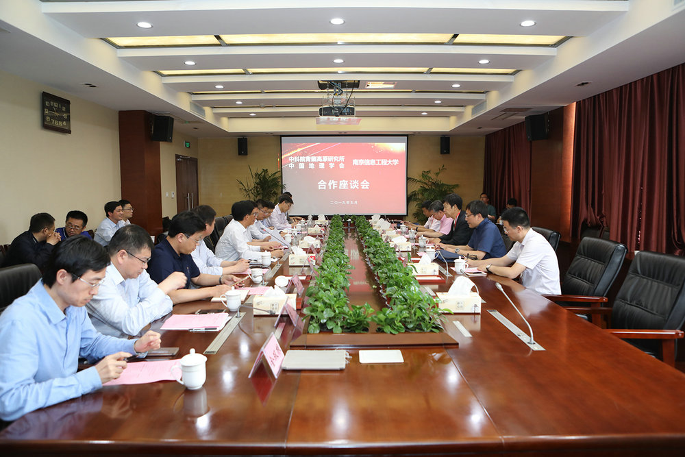 签约仪式后,南京信息工程大学与青藏高原所一行人员开展了座谈研讨。校长李北群、副校长张永宏、校发展规划处、教务处、科学技术处、研究生院、学生工作处等部门负责人出席了会议。南京信息工程大学地理科学学院院长姜彤,遥感与测绘工程学院院长金双根、大气科学学院副院长张文君出席了会议,座谈会由张永宏主持。