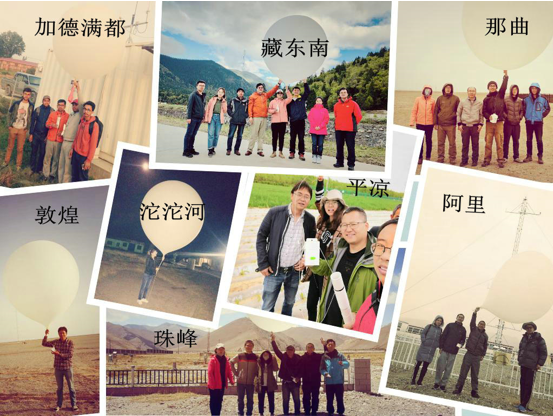 为深入研究青藏高原地气相互作用过程及其影响天气气候的机理,在“第二次青藏高原综合科学考察研究”、“中科院战略性先导科技专项(A类)“泛第三极环境变化与绿色丝绸之路建设”、国家重点研发计划“重大自然灾害监测预警与防范”之重点专项“青藏高原地-气相互作用及其对下游天气气候的影响”和国家自然科学基金重大研究计划青藏高原地-气耦合系统变化及其全球气候效应”之重点项目“泛第三极地区多圈层地气相互作用过程及其影响区域能量和水分循环的机制研究” 等项目的支持下,我所“地气作用与气候变化研究团队联合国内外十余家单位在青藏高原及周边地区开展了历时15天的“地气相互作用与气候效应”立体综合加强观测试验。此次试验在季风和西风断面上的8个地点同步进行,分别是珠峰、藏东南(中科院青藏高原所负责)、阿里(中国气象局成都高原气象所负责),那曲、平凉(中科院西北生态环境资源研究院负责),沱沱河(青海省气象科学研究所负责),敦煌(中科院大气物理研究所负责),尼泊尔加德满都(Tribhuvan Univ.水文气象系)。立体观测试验站点涵盖了青藏高原及周边地区的荒漠砾石、林间草地、高寒草甸、黄土塬上、戈壁沙漠等诸多典型陆地下垫面。