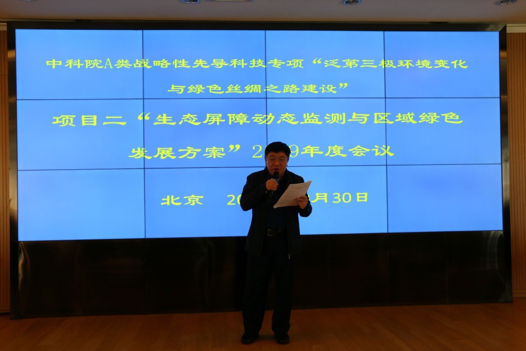 朱立平在简短致辞后进行项目汇报,在简要回顾了项目在专项中的作用与设计思路、项目总体目标与研究内容、实施方案后,着重汇报了2019年度项目任务目标、考核目标与完成情况以及项目取得的重要工作进展,包括:(1)地面监测气象数据揭示最近10余年青藏高原暖湿化持续并具空间差异;(2)青藏高原气候暖湿化加速了冻土的退化速率和程度使得冻土含水量明显上升;(3)完成了基于Landsat影像的青藏高原地区近期冰川面积提取和典型地区的冰川储量变化估算;(4)开发了依托Google Earth Engine平台的Landsat影像快速提取湖泊面积方法,并分析了不同补给类型湖泊水量变化空间差异及与气候变化关系;(5)对热浪气候变化的机制及其影响和未来情景获得了一系列新认识;(6)完成了极端天气气候事件对中亚农业影响及适应技术遴选;(7)提出由6个旗舰国家公园为引领、2个跨国国家公园和12个国家公园共同构成的地球第三极国家公园群;(8)分析了青藏高原国家公园建设的交通和住宿设施理论容量、建设路径和管理机制;(9)建成了卫星遥感-航空遥感-地面观测-行业数据验证的多源数据融合的生态工程监测体系并阐明了近四十年来青藏高原重大生态工程建设的时空格局;(10)明确了生态资产变化趋势及土地利用变化/自然保护区对生态资产量变化贡献;(11)在青藏高原和中亚地区完成了野外站观测设备运行监控和数据实时传输与可视化分析系统(12)产出了一系列得到中央和地方领导批示并有效服务青藏高原地区发展与保护的咨询报告等。项目全面完成年度目标任务,发表论文75篇(其中第一资助SCI论文29篇),获得软件著作权7项,专利4项,科技奖1个,完成咨询报告3个,科技报告1个,专著2项,图集2个。
