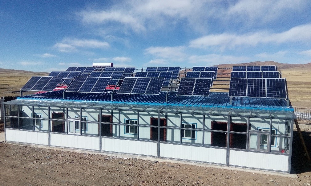 3.为了解决那曲农网冬季停电时间较长的问题,研究所在科研装备库房顶安装了一套清洁环保的10KW离网式光伏发电系统,该系统由西藏英利新能源有限公司加工制作和安装调试。