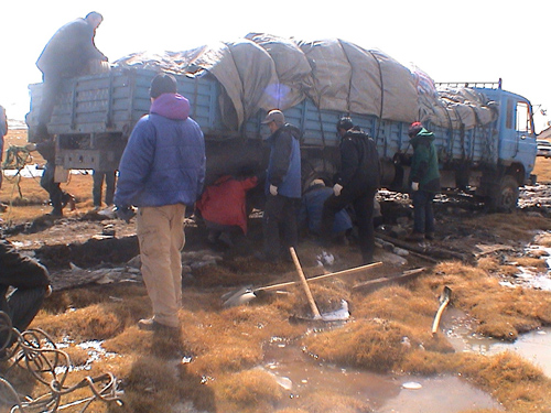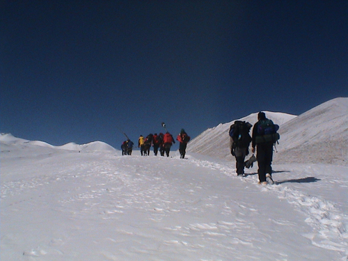 本次考察队分别从兰州和拉萨出发,在雁石坪汇合后、进入各拉丹冬地区,尽管天气寒冷,但考察队仍然经历了不断陷车的困难,在四天内推进了