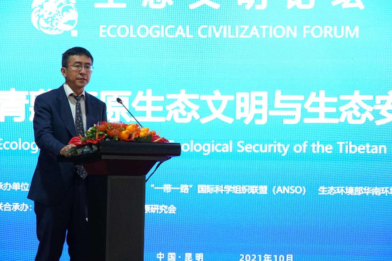 本次论坛是《生物多样性公约》第十五次缔约方大会期间举办的“生态文明论坛”主题分论坛之一。由中国科学院青藏高原研究所、“一带一路”国际科学组织联盟(ANSO)、生态环境部华南环境科学研究所以及中国地理学会、中国青藏高原研究会联合承办。ANSO主席白春礼院士、国际地理联合会(IGU)主席迈克尔·梅多斯教授、巴基斯坦科学院前院长、ANSO副主席默罕穆德·卡西姆·詹向论坛发来视频致辞。中国科学院副院长张亚平、云南省副省长张治礼、青海省副省长刘涛等出席现场活动并致辞。论坛由中科院青藏高原所所长陈发虎院士主持。白春礼在致辞中表示,由中国科学院牵头成立“一带一路”国际科学组织联盟,发挥秘书处设立在中国科学院青藏高原研究所的天然优势,在推动青藏高原生态保护立法、第三极环境(TPE)国际计划等方面,做出了积极的努力和贡献。