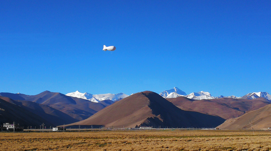 珠穆朗玛峰和洛子峰前的极目一号III型浮空艇