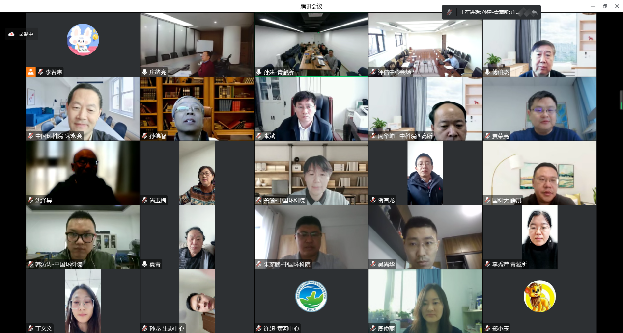 2月14日,由我所牵头承担的黄河流域生态保护和高质量发展联合研究(第一期)“黄河源和上游区生态监管技术体系与保护对策”项目启动会暨实施方案论证会在北京(线上)顺利召开。项目实施方案论证专家组组长由傅伯杰院士担任,专家组成员包括中国环境科学研究院宋永会研究员、夏青研究员,北京林业大学孙德智教授,北京大学沈泽昊教授,青海省果洛州林草站贺有龙高级畜牧草原师,国能准能集团有限责任公司张斌高级工程师以及生态环境部土壤与农业农村生态环境监管技术中心尚玉梅高级会计师。来自中国环境科学研究院、中国科学院大学,生态环境部环境工程评估中心、中国科学院生态环境研究中心、中国科学院西北生态环境资源研究院、中国科学院西北高原生物研究所、中国科学院青藏高原研究所等单位50余人参加会议。论证会由傅伯杰院士主持。