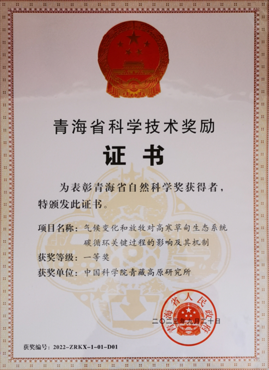 11月30日,青海省科学技术奖励大会在西宁召开。大会公布了《青海省人民政府关于2022年度青海省科学技术奖励的决定》(青政〔2023〕39号),由中国科学院青藏高原研究所等单位完成的“气候变化和放牧对高寒草甸生态系统碳循环关键过程的影响及其机制”获2022年度青海省自然科学奖一等奖。获奖者分别为我所汪诗平研究员(第一完成人)和汪涛研究员、中国科学院大学王艳芬教授、中国科学院西北高原生物研究所罗彩云副研究员和张振华研究员。