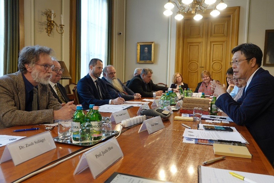 4月8日下午,中国科学院青藏高原研究所陈发虎院士一行访问匈牙利科学院(MTA),与匈牙利科学院副院长Ferenc Hudecz教授及相关学部负责人、匈牙利罗兰大学副校长Imre Hamer教授等会谈。