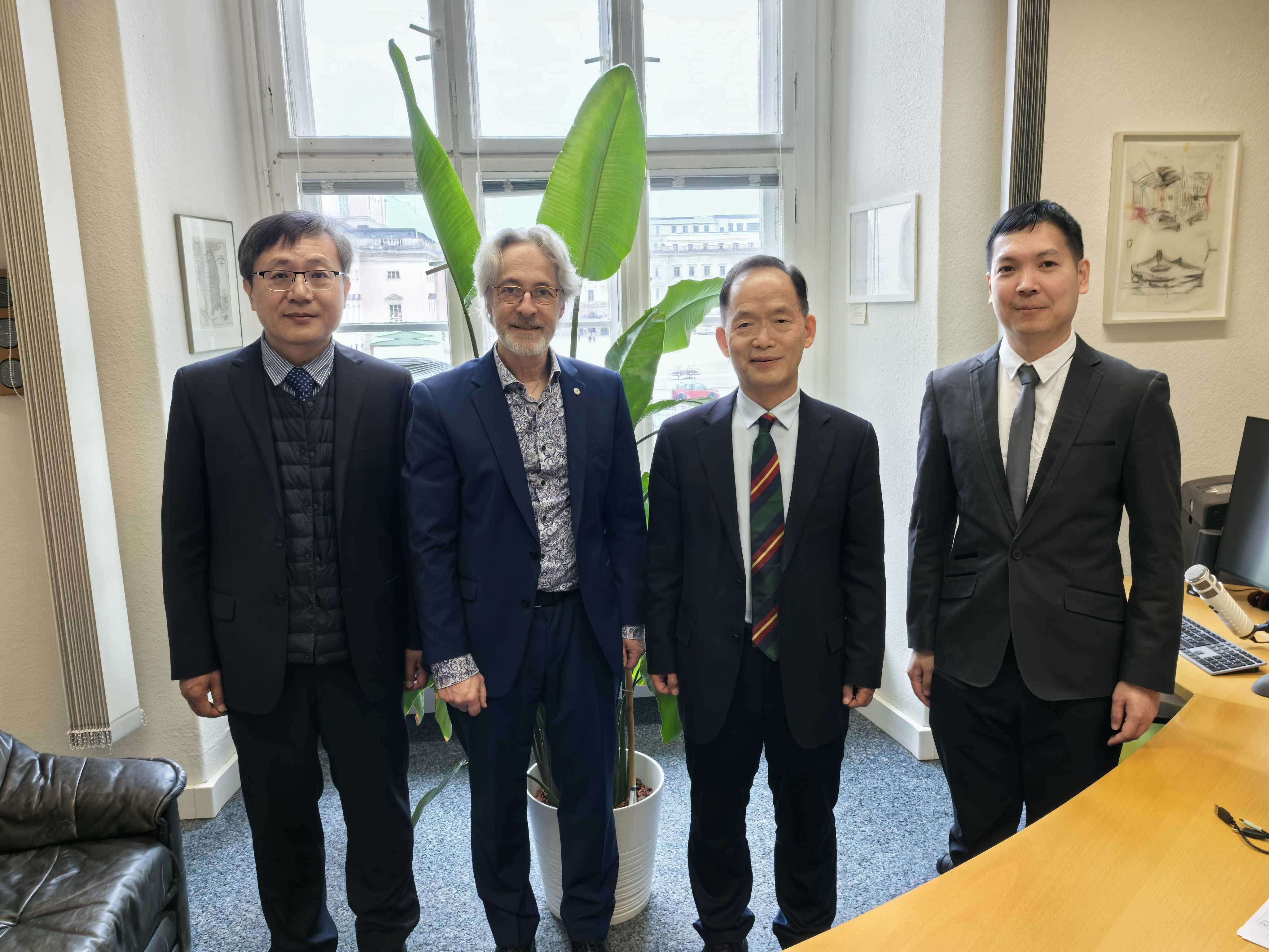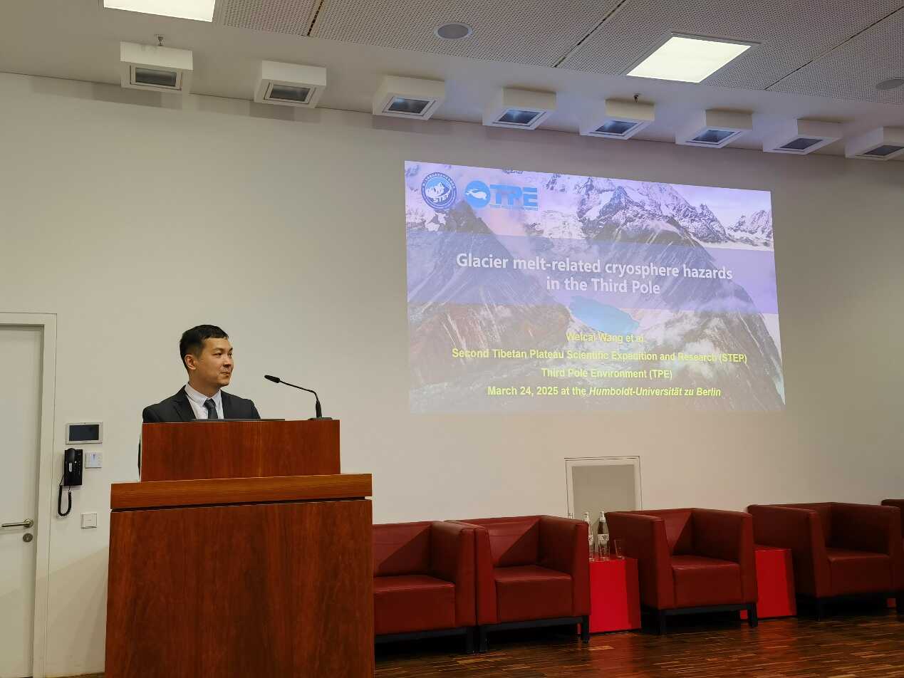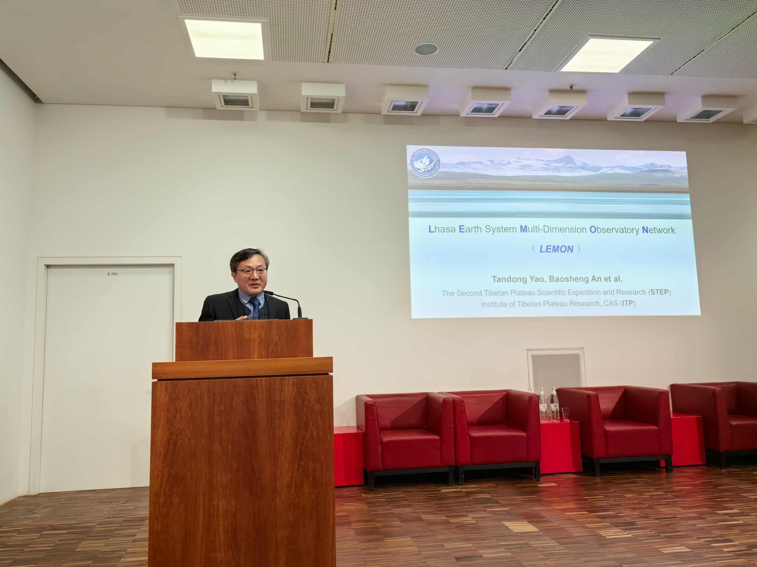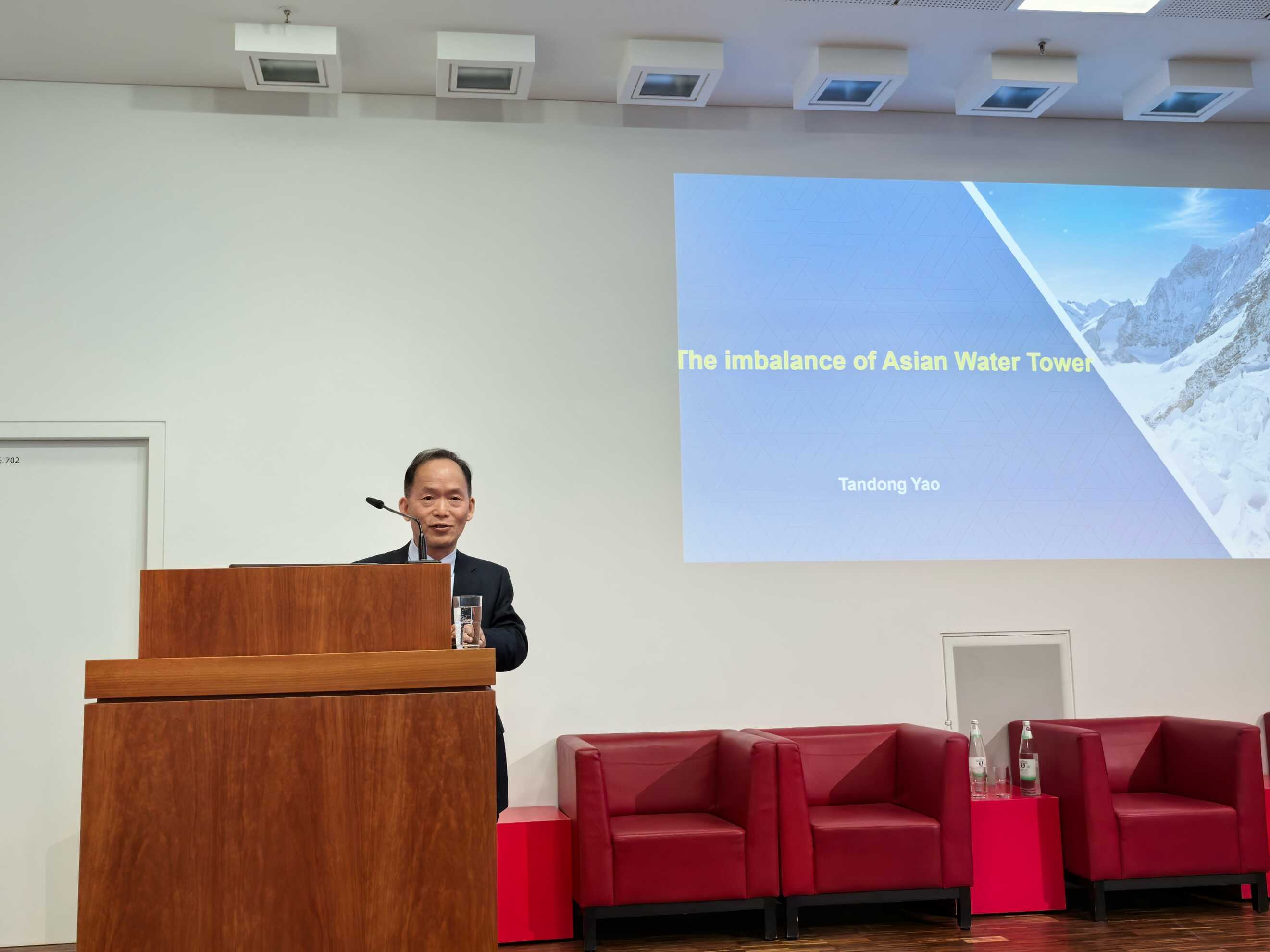 为推进亚洲水塔冰川与发展的科学行动,联合国首个世界冰川日活动结束后,姚檀栋院士带领第二次青藏科考队办公室主任、中国科学院青藏高原研究所副所长安宝晟和第二次青藏科考队办公室副主任王伟财访问柏林洪堡大学,与该校学术副校长Christoph Schneider教授举行会谈,并组织亚洲水塔冰川变化研讨会。研讨会上,姚檀栋、Christoph Schneider、安宝晟、王伟财分别介绍了亚洲水塔失衡、亚洲水塔冰川物质平衡敏感性、拉萨河流域地球系统科考平台、亚洲水塔冰冻圈灾害等研究成果。双方围绕加强冰川观测-模拟融合、研究生联合培养、学术交流等达成了重要共识。