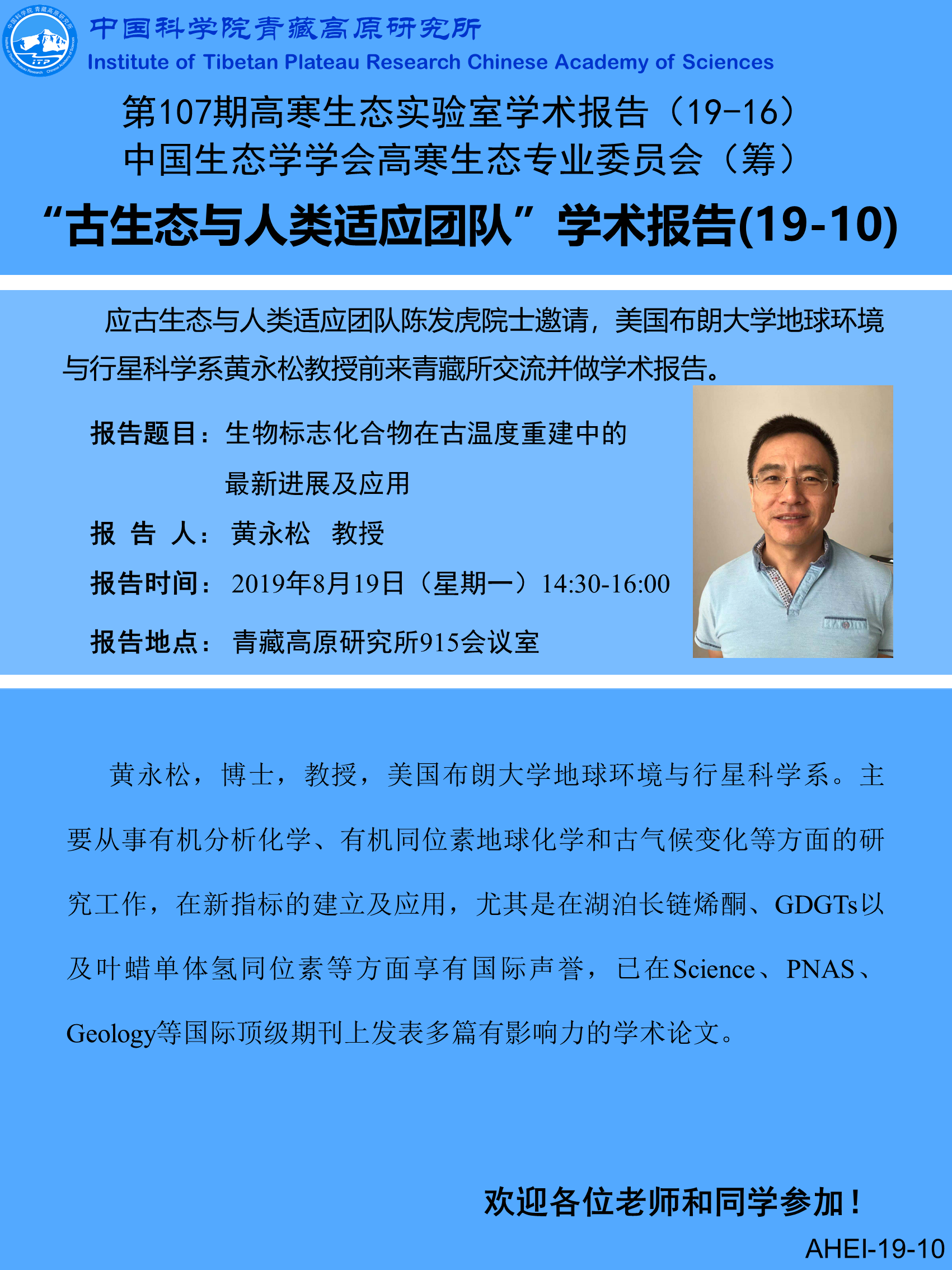 高寒生态实验室“古生态与人类适应团队”学术报告(19-10)[2019.8.19]