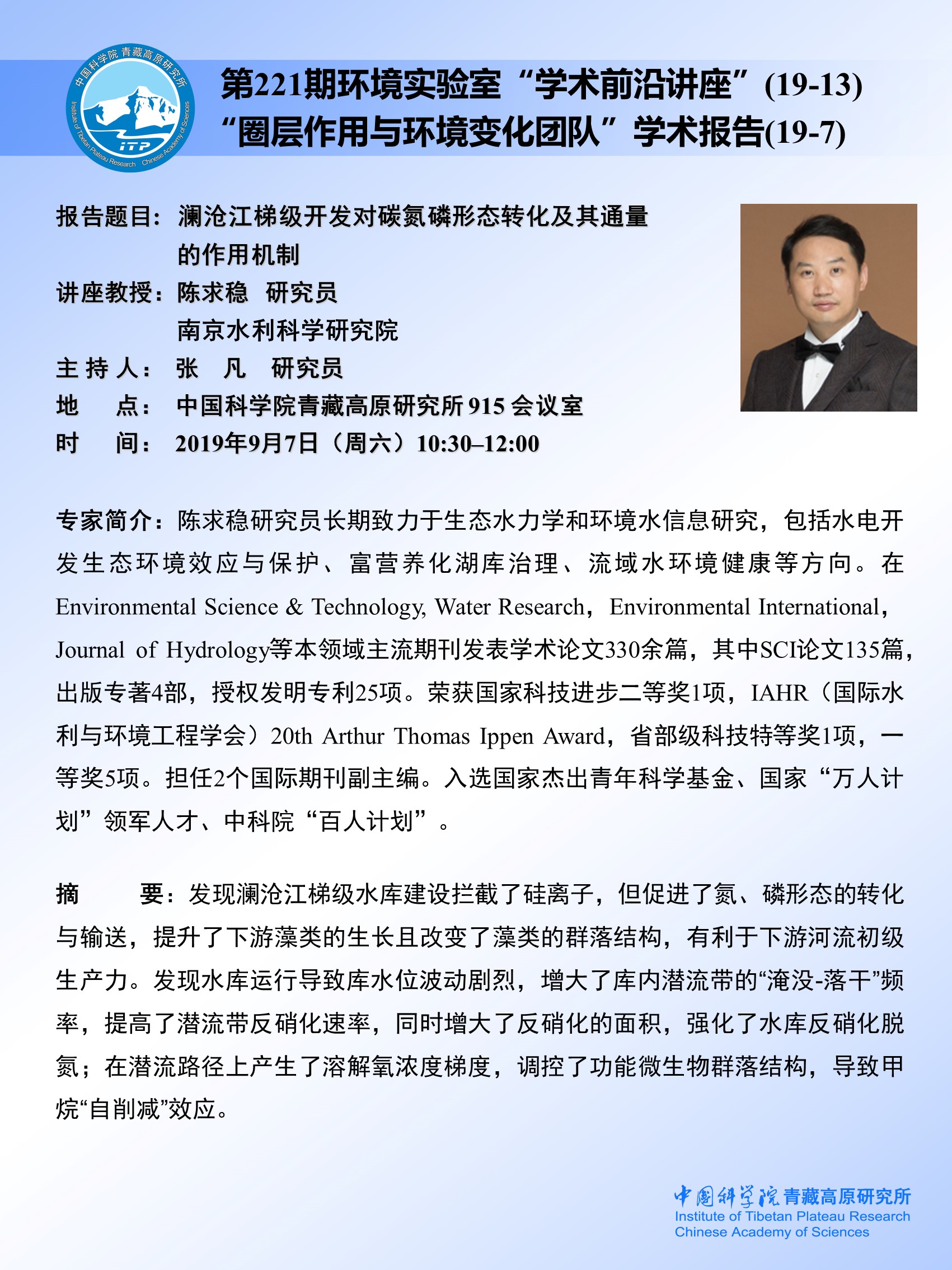 第221期环境实验室“圈层作用与环境变化团队”学术报告(19-7)[2019.9.7]