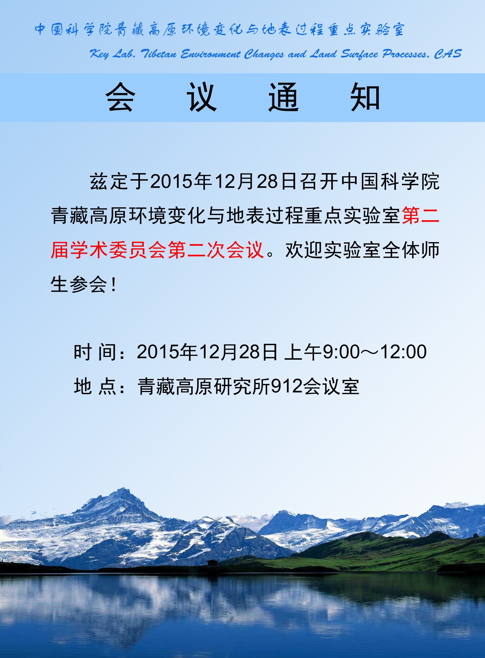 中国科学院青藏高原环境变化与地表过程重点实验室第二届学术委员会第二次会议通知