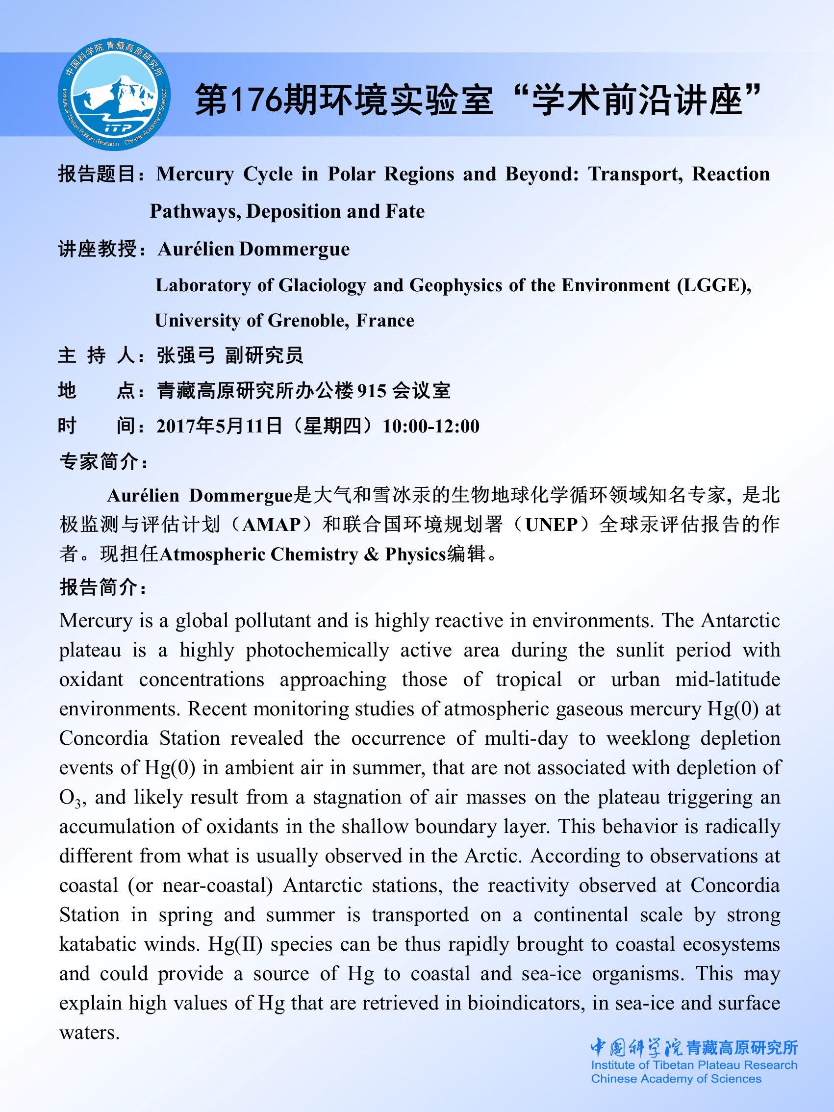 第176期环境实验室“学术前沿讲座