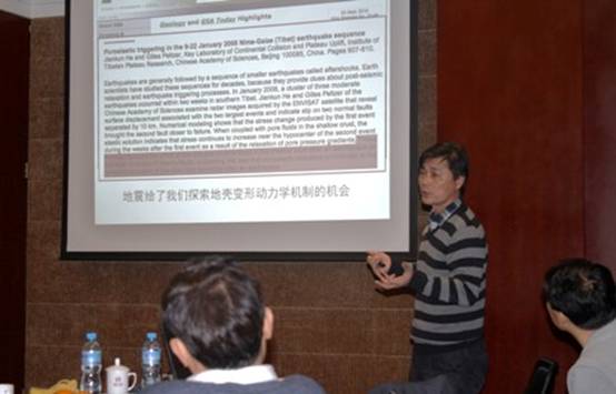 接下来,实验室主任丁林研究员向委员们汇报了2010年实验室的工作,主要从实验室这一年来承担的项目、研究成果、队伍建设与人才培养、仪器购置、开放交流与运行管理、SCI论文奖励措施和开放式基金管理办法等方面向学术委员会议作了工作汇报,并就实验室未来10年发展规划征求各位委员的意见。随后,赵俊猛和何建坤研究员分别做了“青藏高原壳幔结构和动力学”和“流体在地震触发机制中的作用:来自2008 Ms 6.4 尼玛地震的证据”的报告。最后,在听取了实验室工作汇报之后,学术委员会委员首先肯定了实验室一年来的工作,对实验室承担的项目、研究成果、队伍建设与人才培养、仪器购置、开放交流与运行管理、SCI论文奖励措施和开放式基金管理办法等方面提出了很多有建设性的意见。