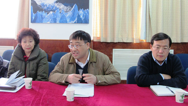冯仁国首先指出,在资环领域开展“创先争优”专题调研的目的就是为更好地促进和服务资环领域的科技创新发展工作,通过学习研究所的科学精神和管理经验提升服务科研管理工作的能力和水平。这次选择首站到青藏高原所专题调研就是要大家更加深入地开展以下几方面的学习:一是要学习老一辈科学家的青藏精神,进一步发扬老一辈科学家在青藏高原严酷的自然环境中不畏艰险、无私奉献的科学精神;二是要学习“立足高原、艰苦创业”的精神,青藏高原所成立以来取得了有目共睹的成绩,大家要认真学习并领会这种在艰苦环境和条件下的创业精神;三是要学习勇攀科学高峰的精神,在姚檀栋院士的带领下,青藏高原所为推动我国青藏高原研究在国际舞台上占有一席之地发挥了重要作用,很好地实践了刘东生先生提出的要把外国人提出的青藏高原研究“Because it is there”变为“Because it is here”(因为青藏高原在这里),这种勇攀科学高峰的精神值得学习。