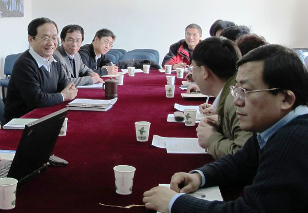 随后,调研组一行听取了青藏高原环境变化与地表过程重点实验室、大陆碰撞与高原隆升重点实验室和高寒生态系统与生物多样性实验室、青藏高原观测研究平台、阿里高寒荒漠环境综合观测研究站和慕士塔格西风带环境综合观测研究站的工作汇报。之后,大家围绕资环局创先争优活动开展、“十二五”规划和“创新2020”的组织实施,院级台站和实验室建设、面向地方需求的生态研究、野外科学考察待遇等具体问题进行了交流讨论。