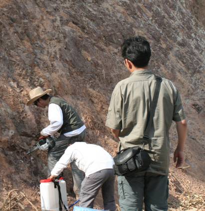 老挝万象白垩纪野外露头剖面古地磁样品的采集