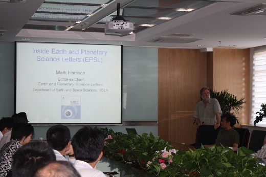 访问期间,Mark Harrison教授作了题为“How to submit you work to Earth and Planetary Science Letters(如何向EPSL投稿)?”的报告,他介绍了EPSL杂志和编辑结构,当前期刊和出版商面临的挑战。他指出,中国增长的科学力量对国际刊物的编辑能力提出了更高要求,EPSL领导层正在考虑增加中国文章的发表量和编辑力量。随后,与会人员就感兴趣的科学问题与Mark Harrison教授进行了热烈的现场交流讨论,并就可能开展的合作研究交换了意见,为双方开展青藏高原隆升过程研究创造了良好条件。