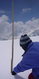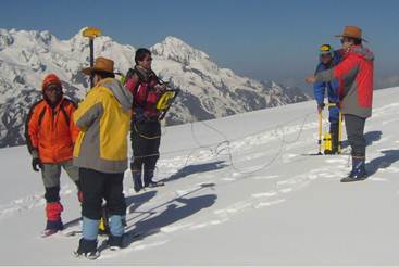 2012年4月23日-5月25日,在“第三极环境(TPE)”国际计划的资助下,中国和尼泊尔科学家第三次在喜马拉雅山南坡尼泊尔朗塘(Langtang)地区开展冰川、径流和气象等方面的野外考察。参加此次考察活动的中方科考人员有我所田立德研究员、余武生副研究员、李生海、李久乐、朱美林等5人,尼方科考人员有尼泊尔特尼布凡大学水文气象系Lochan P. Devkota教授等2人。由于山高路险,只能乘车1天,余下路程全赖步行,往返徒步跋涉需要历时7天之久。