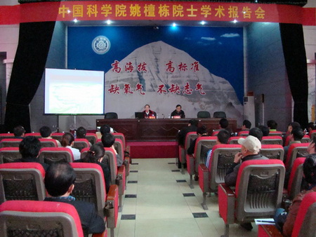 2013年5月24日,应西藏自治区气象局和西藏自治区科学技术协会邀请,所长姚檀栋院士为西藏科技界做题为“两大环流影响与第三极冰川变化”的学术报告。报告会由西藏气象局党组书记王鹏祥主持,西藏科协副主席卜龙和相关科研单位人员参加了此次报告会。