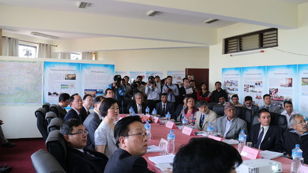 2014年4月7日,由白春礼院长带队,包括谭铁牛副秘书长、成都山地所崔鹏副所长、地理所张林秀研究员以及国际合作局王振宇处长、董麒研究员等中科院代表团一行8人访问尼泊尔特里布文大学,我所所长姚檀栋院士和马耀明副所长也随团参加访问。特里布文大学常务副校长希拉教授带领学校主要领导热情接待了中科院代表团并进行会谈。在双方会谈期间,我所所长姚檀栋院士介绍了“第三极环境(TPE)”国际计划,并在白春礼院长主持下与特里布文大学水文气象系签署了关于共建第三极环境加德满都中心的合作备忘录。 随后,白春礼院长一行在希拉教授等尼方人员陪同下,饶有兴致地参观了位于该校水文气象系的第三极环境加德满都中心,听取了中心执行主任梁尔源研究员所作的中尼双方依靠中心开展的双边合作及取得的科研进展报告。之后,在中尼双方代表见证下,双方举行了仪器捐赠仪式。 在听取中心所取得的进展之后,双方开展了坦诚讨论和交流。TPE计划联合主席姚檀栋院士介绍了第三极环境加德满都中心的定位。白春礼院长表示,中科院青藏高原所和尼泊尔特里布文大学依靠中心开展了务实、卓有成效的合作,希望双方能继续推进双边合作。白春礼院长强调,可以以第三极环境加德满都中心为基础进一步将其建设成为中科院的海外中心,辐射南亚地区国家。希拉教授对中科院长期以来与特里布文大学的合作表示支持与感谢,并承诺将继续支持第三极环境加德满都中心的发展。 讨论结束后,我所杨晓新副研究员还带领白春礼院长一行参观了第三极环境加德满都中心的介绍展板,并与中心的尼泊尔藉学生进行了友好交流。之后,白春礼院长和特里布文大学校长共同为该中心题字,勉励中尼科学家利用中心该平台继续加强合作。 参观结束前,白春礼院长和希拉教授共同为第三极环境加德满都中心正式揭牌并合影留念。中国驻尼泊尔大使吴春太陪同参加访问。