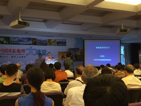 2014年6月5日,“中国国家地理大讲堂”在中科院地理资源所举行。姚檀栋院士作为大讲堂特邀嘉宾作了题为“青藏高原的冰川”的科普报告。来自中科院及大学的学生、研究生以及爱好科学、旅游的普通民众等150余人聆听了报告。 在报告中,姚檀栋院士首先从第三极的科学视角出发讲述了青藏高原冰川研究的重要意义,然后结合自身的经历,重点向大家讲述了他与冰芯的故事,分享了青藏高原冰芯研究的方法和成果。此外,姚檀栋院士还详细介绍了气候变化背景下青藏高原冰川的变化情况,以及冰川变化对湖泊、河流、冰湖溃决洪水、冰川补给湖扩张洪水、社会经济等方面的重要影响,最后提出应对气候变化的具体措施。姚檀栋院士的报告还简要介绍了“第三极环境”(TPE)国际计划的主要工作进展。 姚檀栋院士的报告浅显易懂,又不失其科学性,给不同知识背景的听众以很大启发。报告结束后,在互动环节时听众提了许多有趣的问题,姚檀栋院士一一进行了解答。 “中国国家地理大讲堂”创办于2006年11月,由《中国国家地理》和兴业全球基金共同主办。大讲堂兼科学性、趣味性、大众性于一体,面向社会公众免费开放。大讲堂广泛邀请自然科学界的专家学者、社会知名人士,向听众深入浅出、通俗易懂地讲述专业的科普知识。