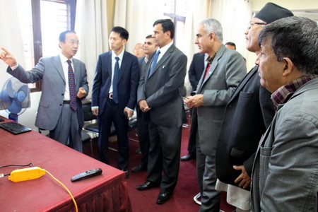 11月20日,应中国科学院加德满都科教中心(简称“加德满都中心”)和特里布文大学的邀请,加德满都中心共建单位中国科学院遥感与数字地球研究所(简称“遥感地球所”)副所长刘建波一行三人访问加德满都中心,安装遥感数据模拟系统,并与校领导进行了会谈。 加德满都中心执行主任梁尔源首先转达了中心主任姚檀栋院士对特里布文大学新任校长的祝贺,并向与会领导介绍了加德满都中心的建设情况及所取得的进展;刘建波重点介绍了遥感数据模拟系统的主要参数及其应用。随后,刘建波与特里布文大学副校长Guna Nidhi Nyaupane签署了关于安装遥感数据模拟系统的协议。梁尔源和特里布文大学水文气象系主任Lochan Prasad Devkota共同主持此次活动。 特里布文大学校长Tirtha Raj Khaniya谈到,遥感模拟系统的启用将直接提升特里布文大学在遥感研究和应用方面的综合实力,安装遥感模拟系统是中尼科教合作的具体体现。他期待通过加德满都中心的建设持续增强中尼科研和人才培养等多方面的合作,将中尼科教合作推向新的高度。 期间,双方还就深化合作、共同推进加德满都中心建设举行了会谈。特里布文大学校长Tirtha Raj Khaniya、副校长Guna Nidhi Nyaupane、Chandra Mani Poudel 及相关院系领导、加德满都中心执行主任梁尔源、行政主管刘晓波、主任助理Binod Dawadi出席了会议。
