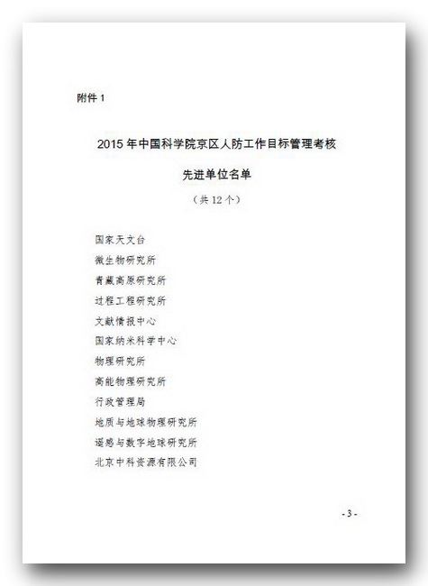 青藏高原所荣获“2015年中科院京区人防工作先进单位”